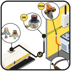 La chaleur nécessaire pour permettre au GPL de continuer à s’évaporer provient de l’air ambiant en contact avec le réservoir. En cas de fort débit et de basse température ambiante, la paroi extérieure de la bouteille peut givrer. Le propane fournit une pression élevée à des températures plus froides et se vaporise plus rapidement, ce qui permet de l’utiliser et de le stocker à l’extérieur. Le butane est principalement utilisé à l’intérieur ou en été.