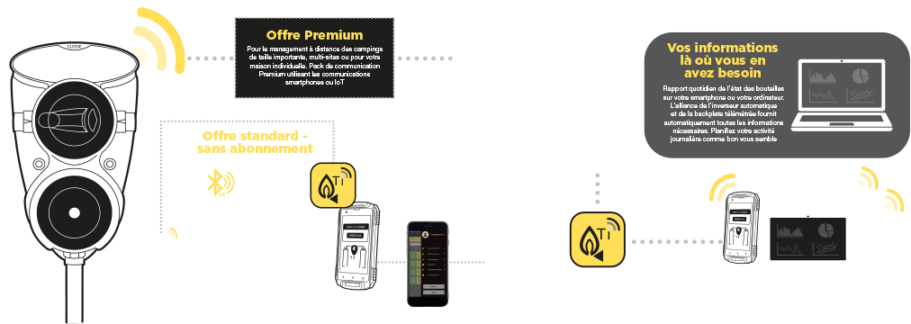Les deux gaz offrent un excellent rendement énergétique et une combustion propre, sans particules fines. Les pressions nominales d’utilisation sont de 0,3 à 7,5 bar pour le butane, et 1 à 16 bar pour le propane.