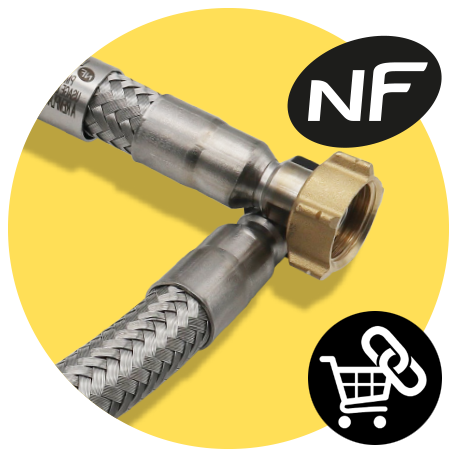 Lors d’un remplacement à l’identique sans modification de la tuyauterie, vous pouvez utilisez la lyre élastomère NF en intérieur, et la lyre inox NF en extérieur.